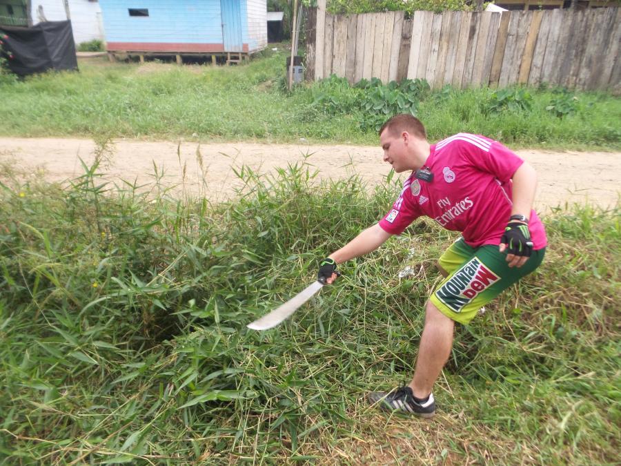 cut the grass with machettes. It was super hot but it was good. We